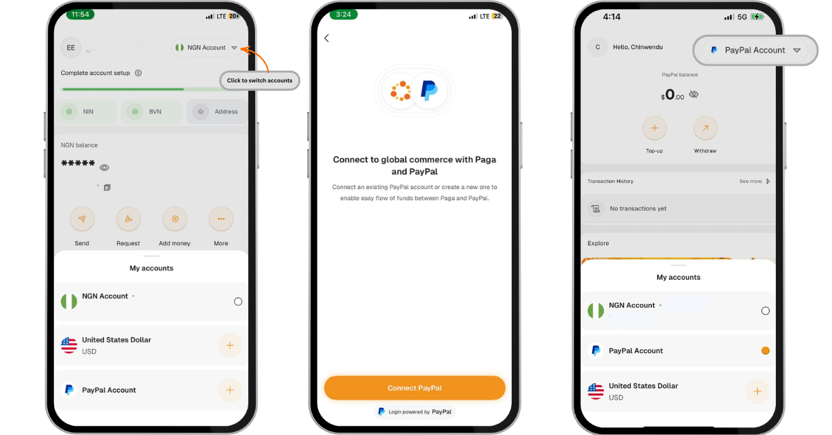 For detailed steps on integration of your PayPal account with Paga, please refer to the full guide here:   👉 How to link your PayPal account with Paga.