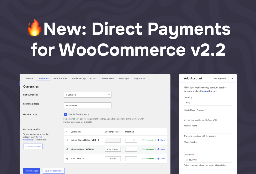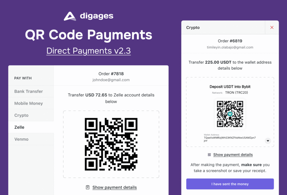 Blog Search All Product News Company News Documentation 24 Apr Running a WooCommerce Store in a Low-Trust Payment Environment Continue reading 24 Apr How to Accept Payments on WordPress Without WooCommerce Continue reading 24 Apr Why Customers Love Personalized Products in WooCommerce Continue reading 24 Apr Best WooCommerce Plugins for Product Customization in 2026 Continue reading 18 Mar Why High-Risk Businesses Choose Direct Payments for WooCommerce Continue reading 11 Jan v2.4: AI Payment Confirmation & Workflow Controls Continue reading 31 Oct 📊 Direct Payments v2.3.2: Analytics + Test Payments Continue reading 01 Oct 🔥 Direct Payments v2.3: QR Code Payments Continue reading 11 Sep 🔔 Direct Payments v2.2.3 is live with Telegram Alerts Continue reading 25 Aug 🔥 Introducing v2.2: Multi-Currencies, Country Rules & More Continue reading 28 Apr Announcing Direct Payments for WooCommerce v2 Continue reading 28 Jan Crypto Payments Are Here! Announcing Direct Payments v1.5 Continue reading